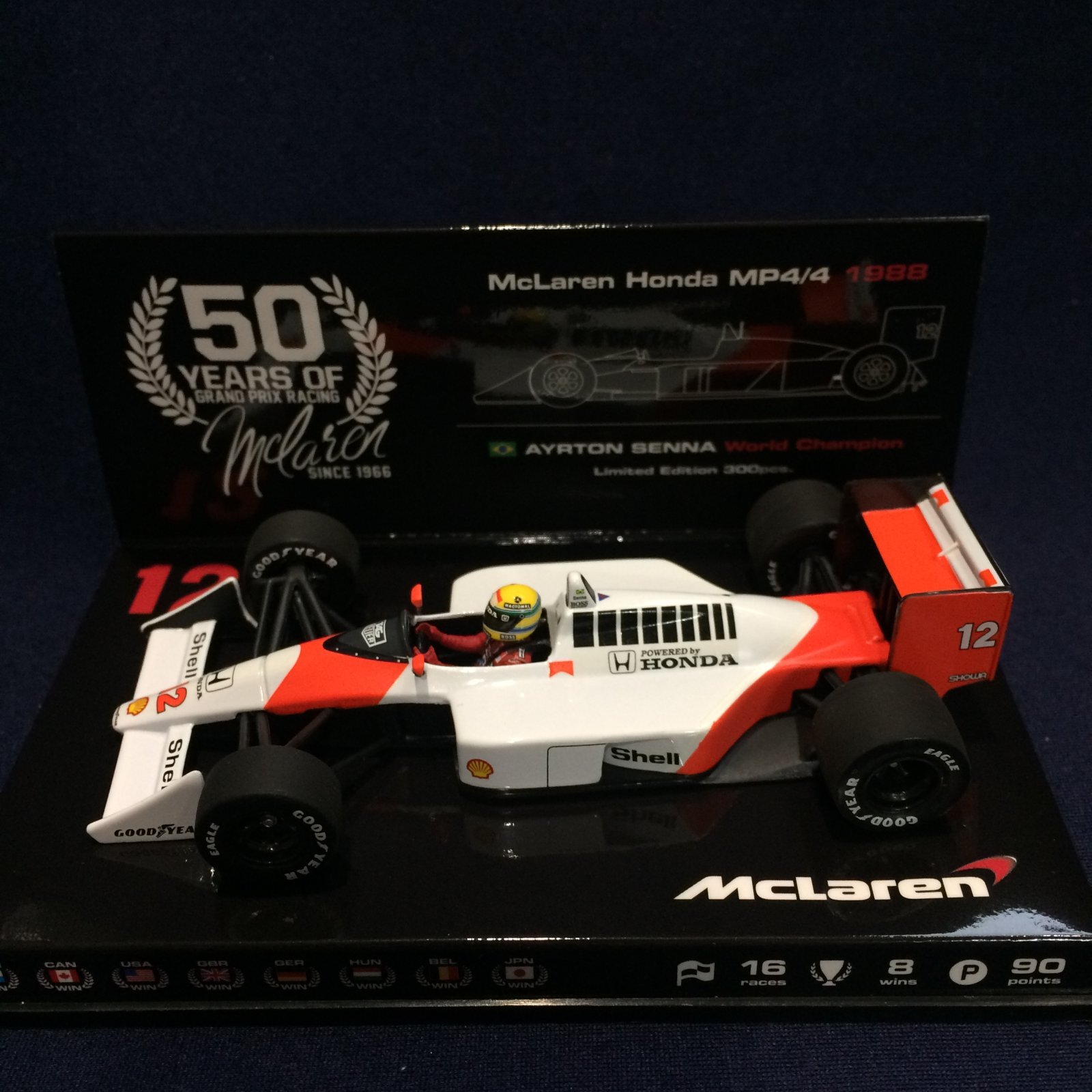 セカンドハンド品●ユーロスポーツ別注●PMA1/43 McLAREN HONDA MP4/4 McLAREN 50th記念 (A.セナ)WORLAD CHAMPION 1988